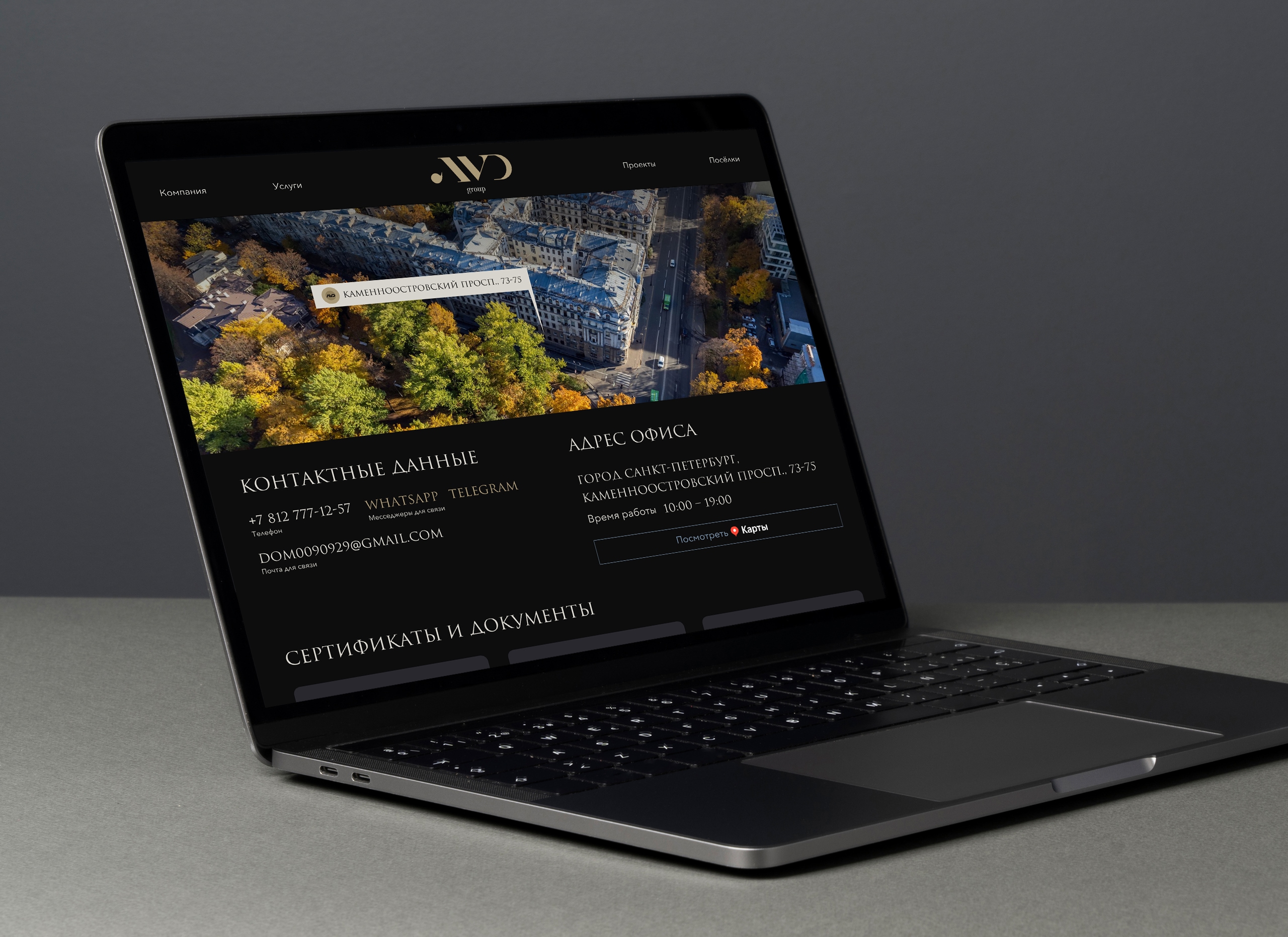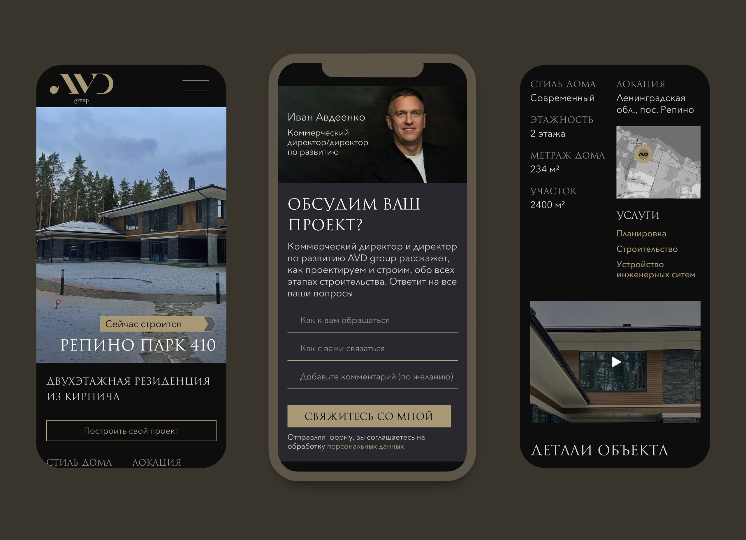 На этапе дизайна мы сформировали концепцию сайта, полностью соответствующую новому позиционированию AVD Group как премиального застройщика элитной недвижимости.