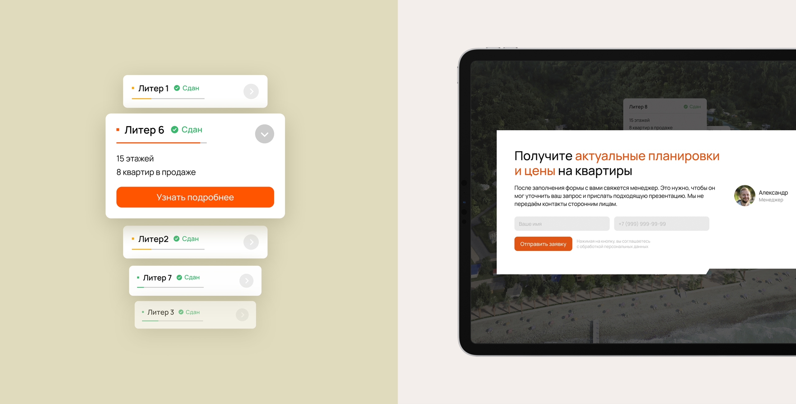 Разработать содержательный промо-лендинг, направленный на эффективное позиционирование нового жилого комплекса у морского побережья и привлечение целевой аудитории.