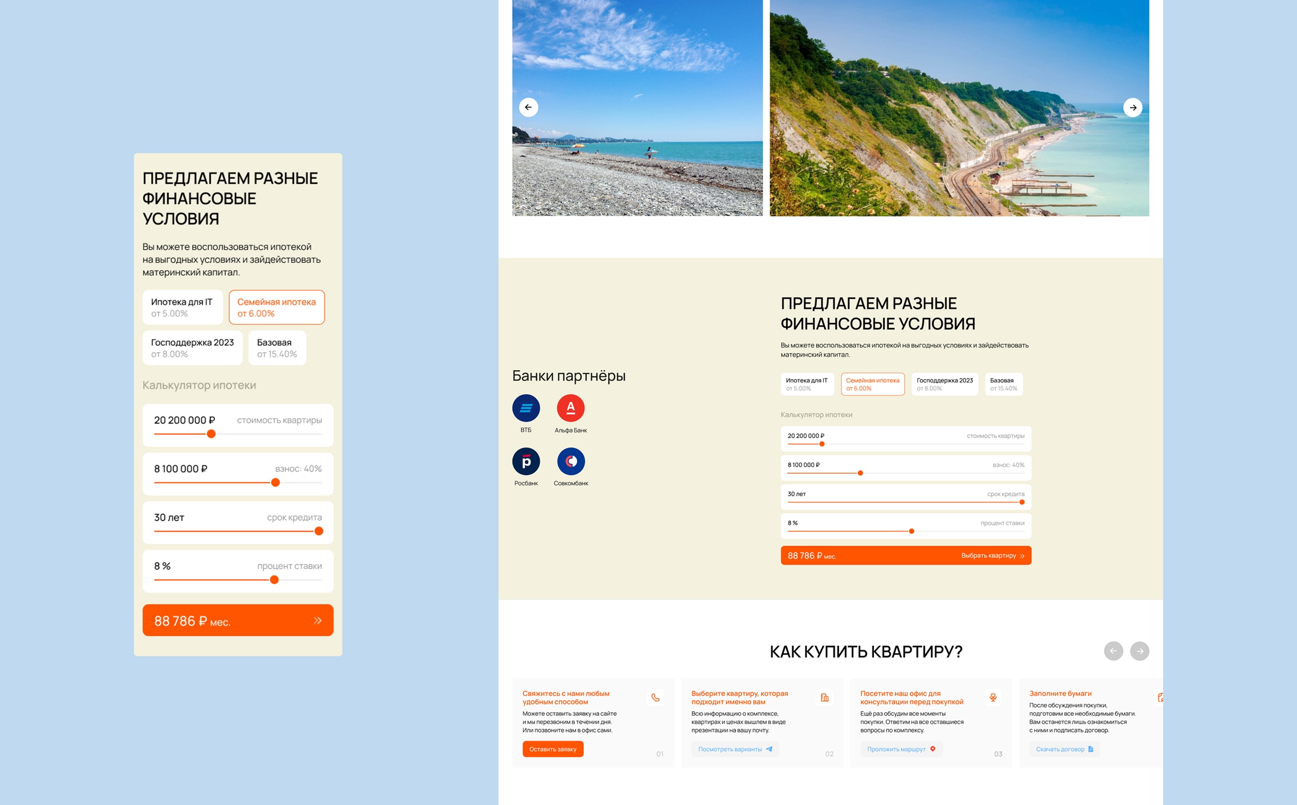 Лендинг жилого комплекса, расположенного в городе Сочи