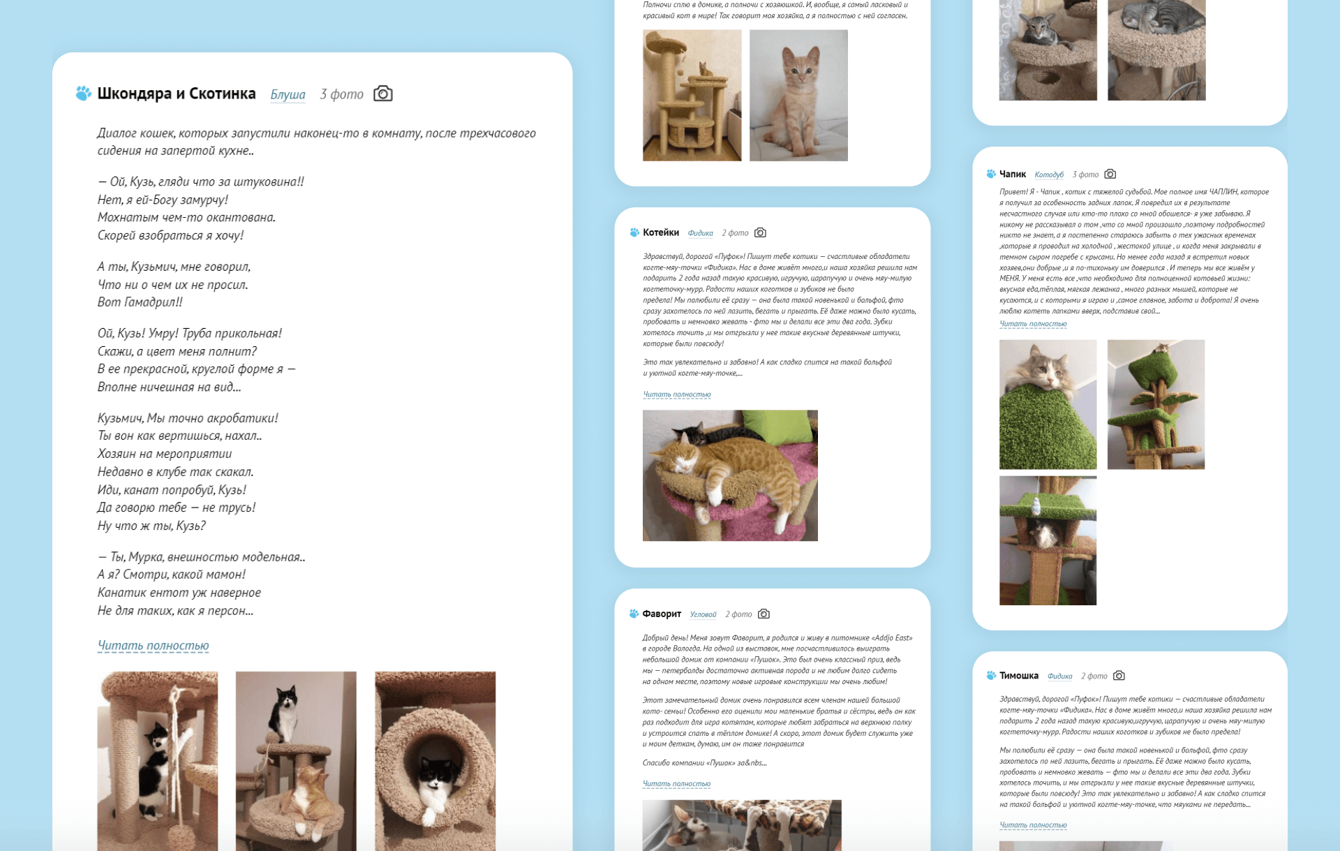 Даже после завершения рекламы на сайте и в соцсетях продолжают поступать отзывы довольных питомцев.